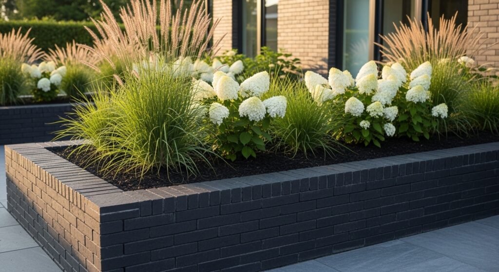 For a cleaner and more contemporary look, charcoal or deep gray brick edging gives your garden beds a refined, modern feel. The darker shade creates bold contrast against bright flowers and lush greenery. It’s perfect for minimalist or structured gardens, and it pairs especially well with white blooms, grasses, and sleek outdoor furniture.