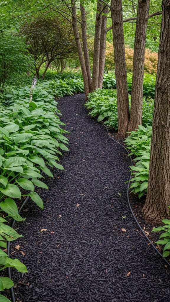 Design winding, mulch-covered paths that gently curve around your trees. Line them with hostas and other shade plants for an inviting, layered landscape. This creates a woodland walkway feel and makes the area more walkable and visually appealing.