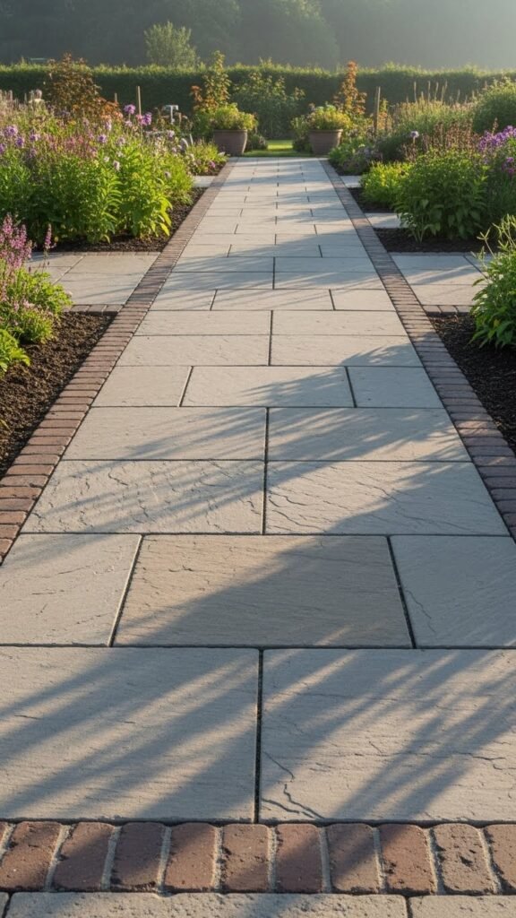30. Wide stone slab walkway with defined edging