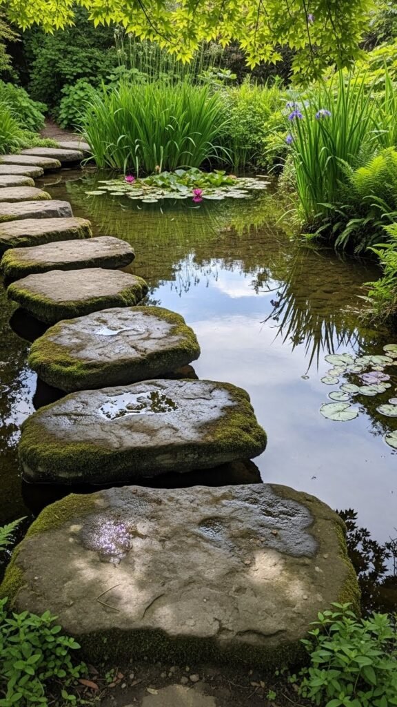 Want something whimsical? Place stable, flat stones across a small pond or water feature — turning it into a stepping-stone crossing. It’s functional, fun, and adds a touch of magic to your garden. Just make sure the stones are secure and walkable.