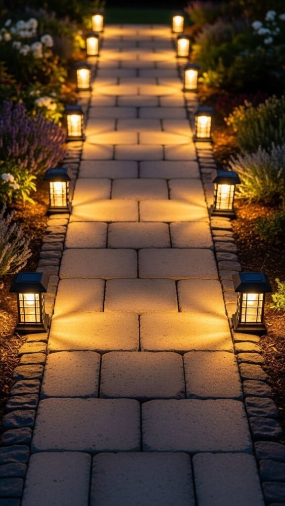 25. Stone paver paths enhanced with lighting