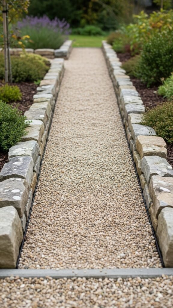 You can define a garden path with stone edging for a clean, finished look. Edging helps outline the path clearly and gives a sense of boundary and order. Because stone integrates so well with natural surroundings, this is a subtle but effective option to enhance walkway aesthetics.