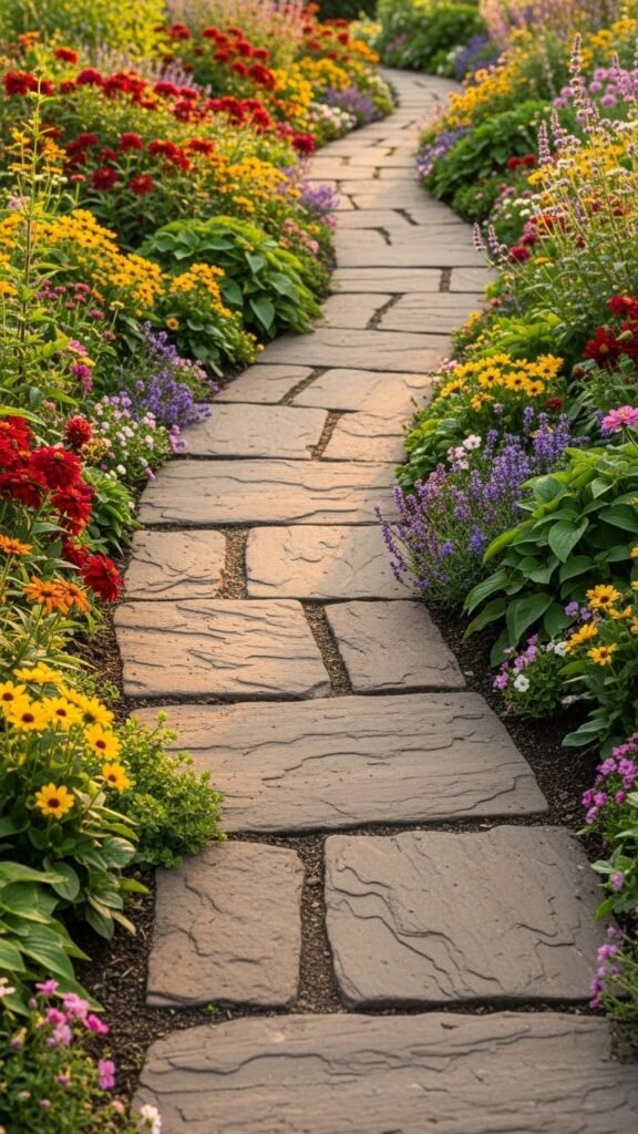 17. Stone path meandering through flowerbeds