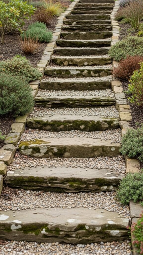 7. Gravel-stair stepped stone walkway (for slopes)